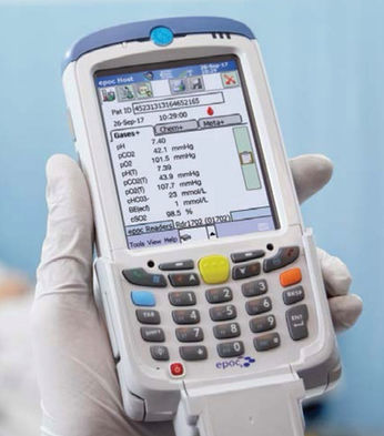 "EPOC是一款方便攜帶的血液氣體分析設備,環境所需溫度為15-30度,可以在大多數的室內空間中使用,其中電池續航可達8小時,或者操作50支檢體,只須在出發前充滿電便不必擔心在外執勤時遭遇電力不足的問題。而在案場抽檢後只需給予設備少許血量便可分析多達14項直測值報告,其中包含酸鹼值、乳酸、肌酸酐、血清尿素氮等等,還可產出多項計算值報告,整體操作時間從採檢直到發出報告只需約5分鐘的時間,這樣可以讓醫師在最短時間獲取所需報告,並給予病患最專業的診斷,卡片設計已將校正液放入測試卡片上,每次操作時都會優先進行測試卡片的校正,以確保每份報告都是在校正通過的情況下發出。